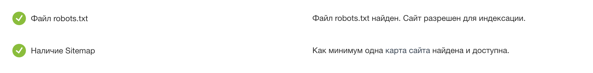 Наличие файлов robots.txt и sitemap.xml для поисковых роботов