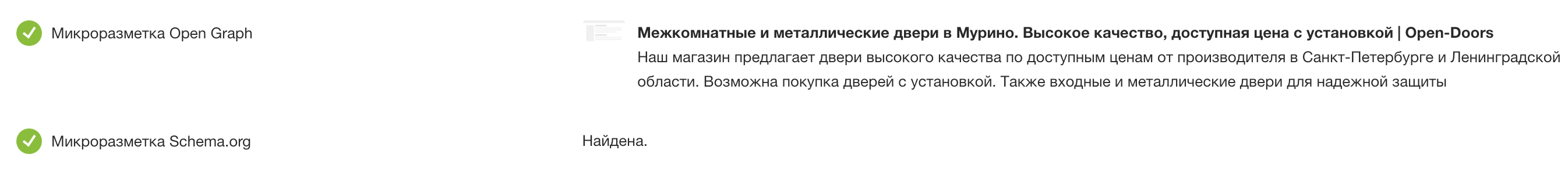 Наличие микроразметки Open Graph и Schema.org на страницах сайта