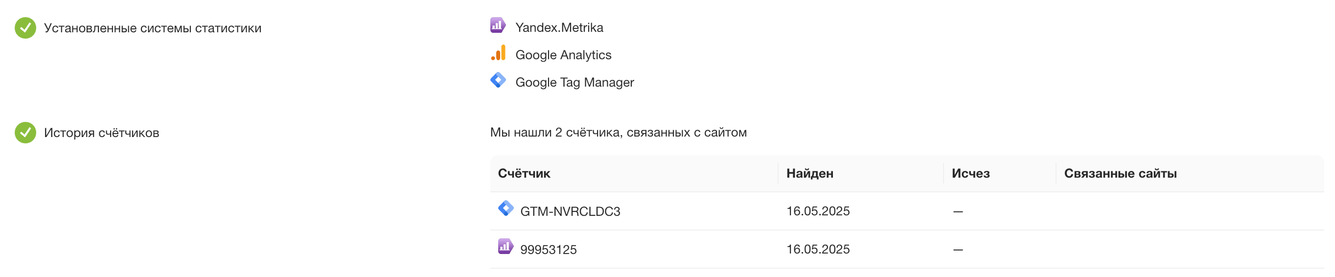 Подключённые системы веб-аналитики Яндекс.Метрика и Google Analytics 4 на сайте
