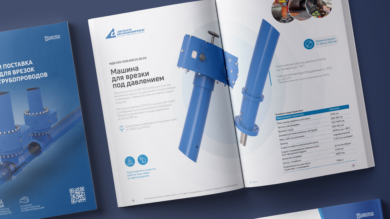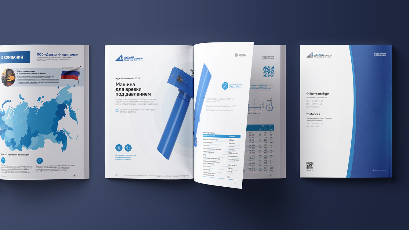 ООО «Дельта Инжиниринг» — ведущий производитель решений для врезок и перекрытия трубопроводов под давлением, обратился к нам для создания комплексного каталога продукции. В рамках проекта были разработаны 3D модели, тщательно проработаны тексты и создан современный дизайн, который отражает технологическое превосходство и надежность компании.