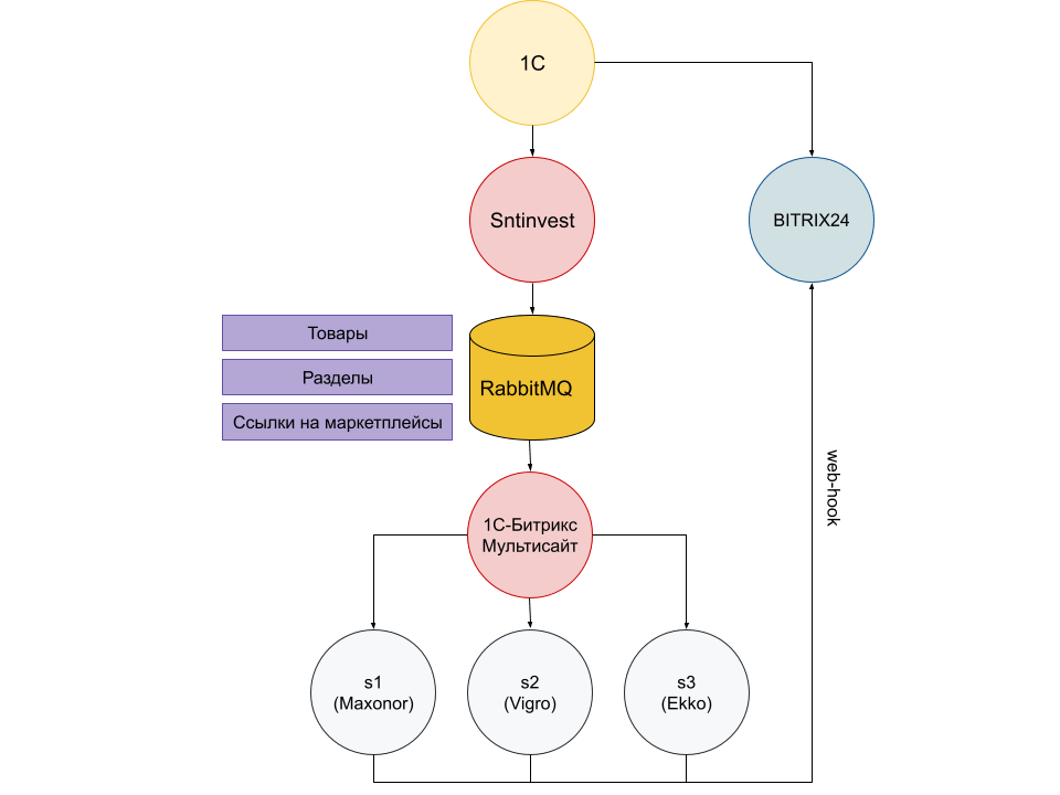 3. В Б24 формируется каталог из товаров, разделов и связей товаров. А так в б24 формируются ссылки на маркетплейсы.