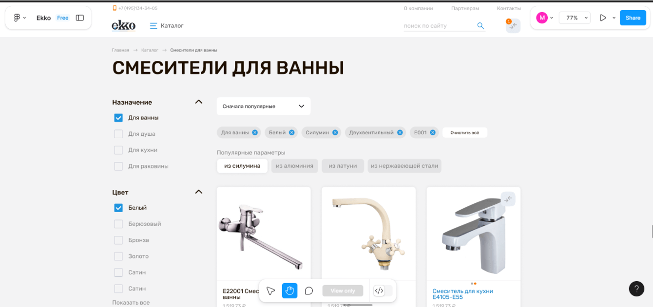 Структура каталога: категории, фильтры по параметрам (бренд, тип, материал, размеры и т.д.).