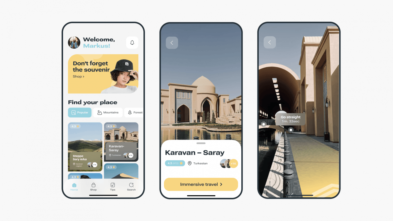 Иммерсивное путешествие, NFT-сувениры, онлайн-помощник. В рамках маркетинговой кампании «Казахстан иначе» мы предлагаем создание продвинутого онлайн-сервиса в виде мобильного приложения для туристов.