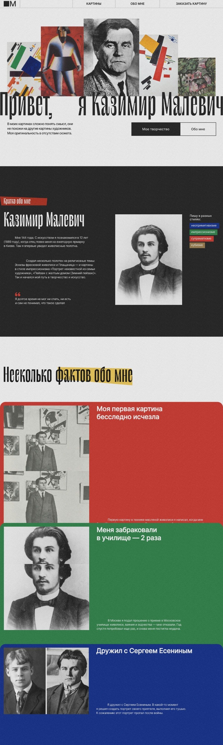 Разработать сайт-портфолио для одного из известных художников того времени. Сайт должен подчеркивать стиль и содержать Tone of Voice.