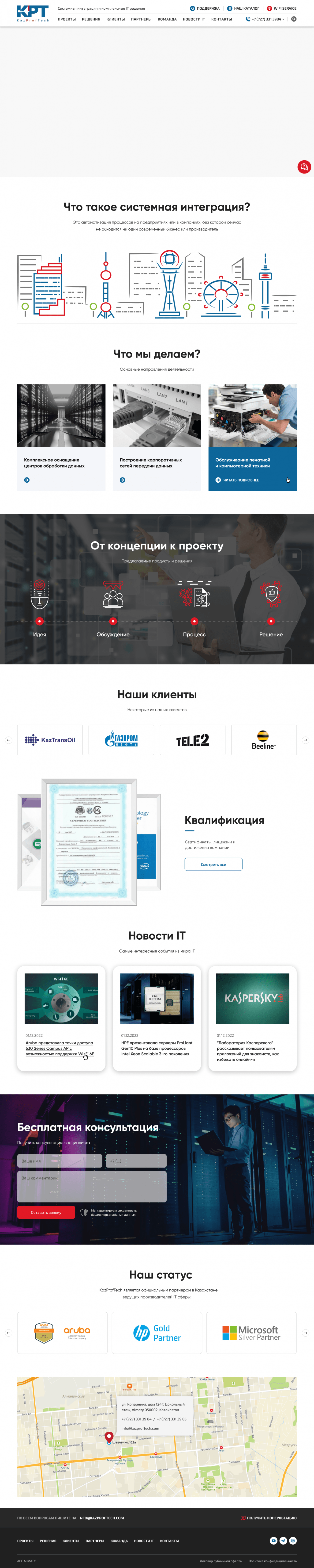 Задача: Разработать веб-сайт для компании, предоставляющей системную интеграцию и комплексные IT решения, с целью представления ее услуг, привлечения новых клиентов и улучшения онлайн-присутствия.