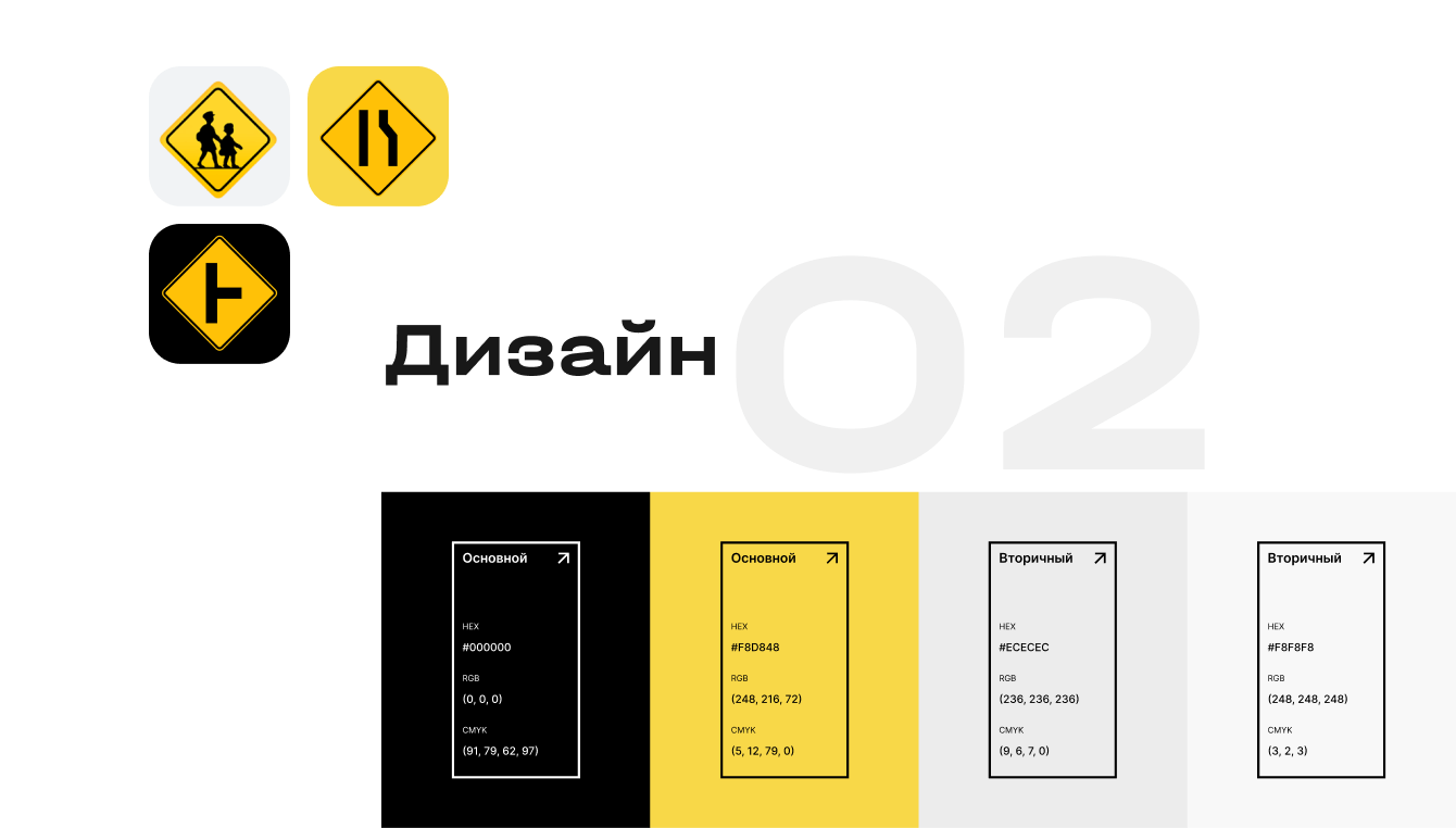Продумывая дизайн, выбрали выигрышное и привычное для аудитории сочетание цветов: контрастно, как дорожные знаки, но не агрессивно.