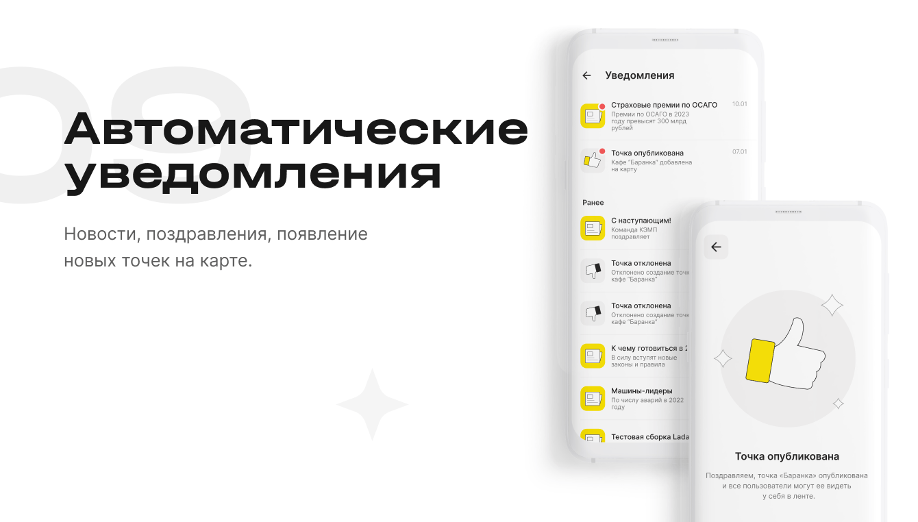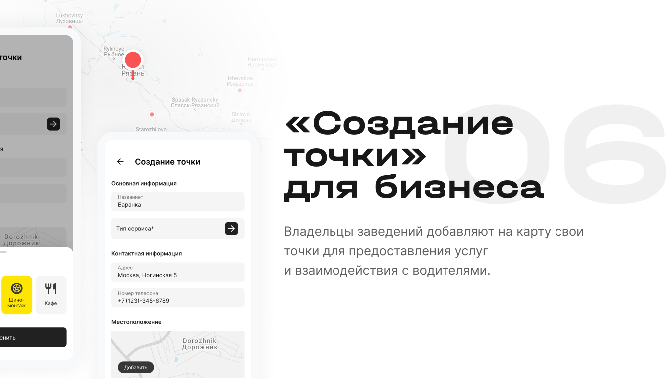 Владелец придорожного заведения может создать собственную точку, она появится на карте после прохождения модерации. Так приложение становится незаменимым помощником для всех пользователей, закрывая их потребности и объединяя водителей с поставщиками услуг.
