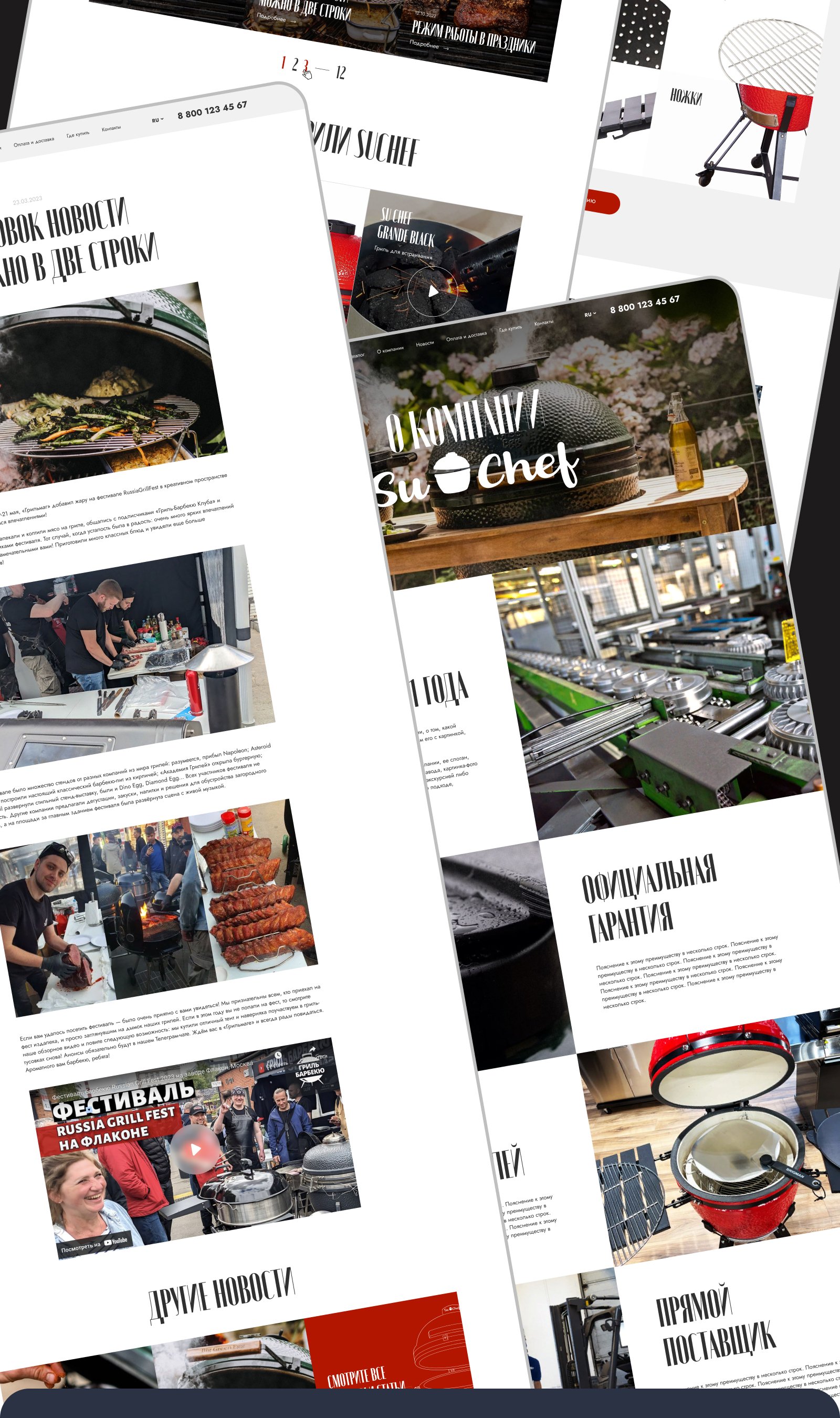 Разработка сайта французской компании Su Chef. Нужно сделать стильно и индивидуально, не шаблонно, подчеркнуть достоинства грилей, сделать возможность "оставить заявку" на гриль.