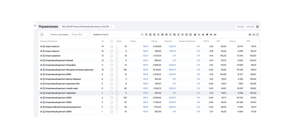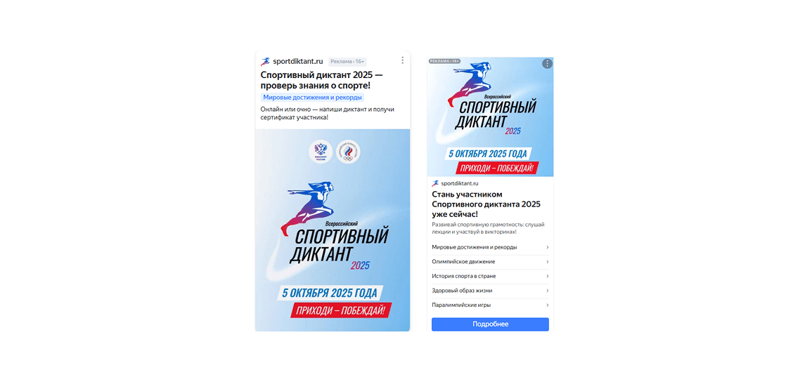 Команда Олимпийского комитета организует офлайн-площадки более чем в 500 точках и параллельно ведет онлайн-формат, где ключевой инструмент — набор участников через сайт sportdiktant.ru. До старта кампании были отдельные активности и прошлые акции, но под запуск диктанта 2025 года требовалась цельная медийная стратегия и масштабная рекламная поддержка во всех основных каналах.
