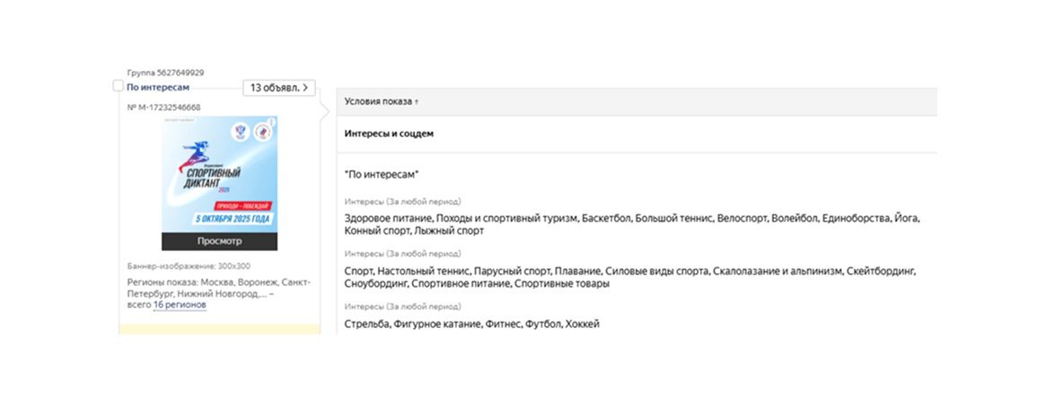 Медийная реклама по интересам к спорту и здоровому образу жизни