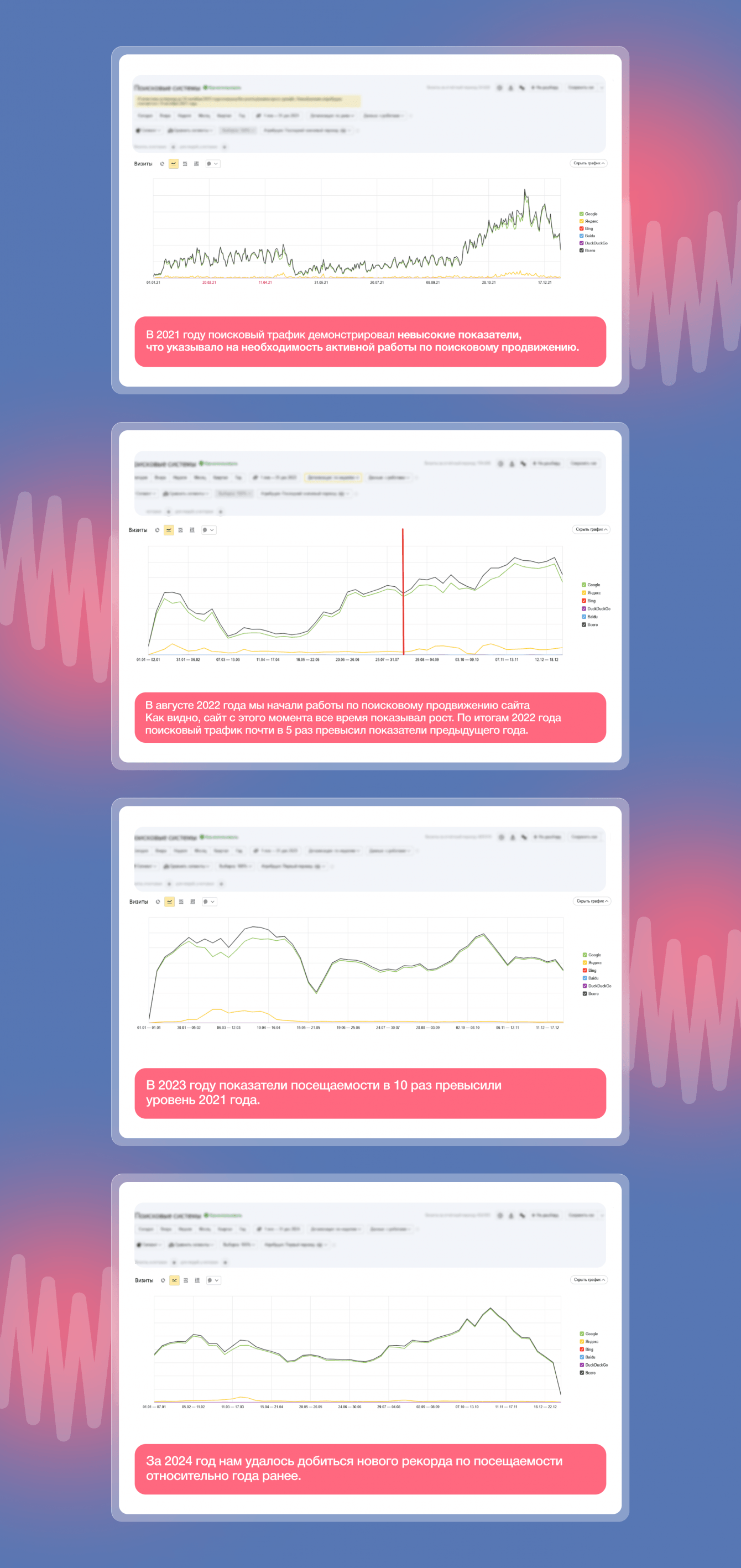 Мы продолжаем работу, и на 2025 год нашей главной задачей мы видим расширение целевой аудитории сайта за счет роста позиций в Яндексе. В результате мы прогнозируем рост трафика еще в 2 раза.