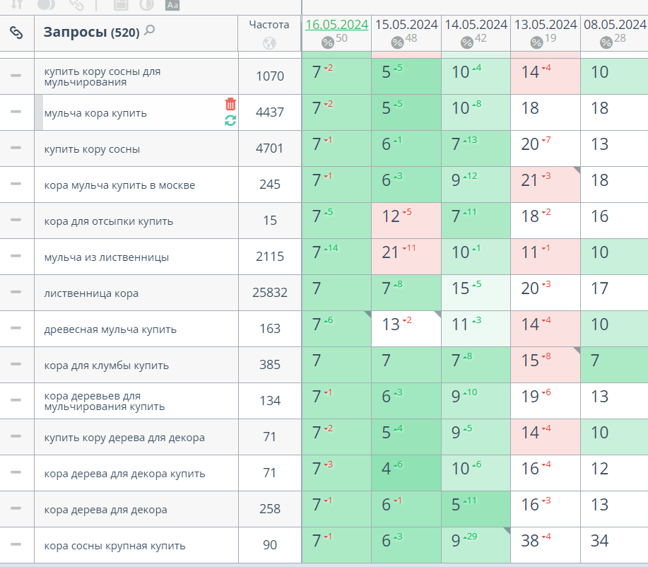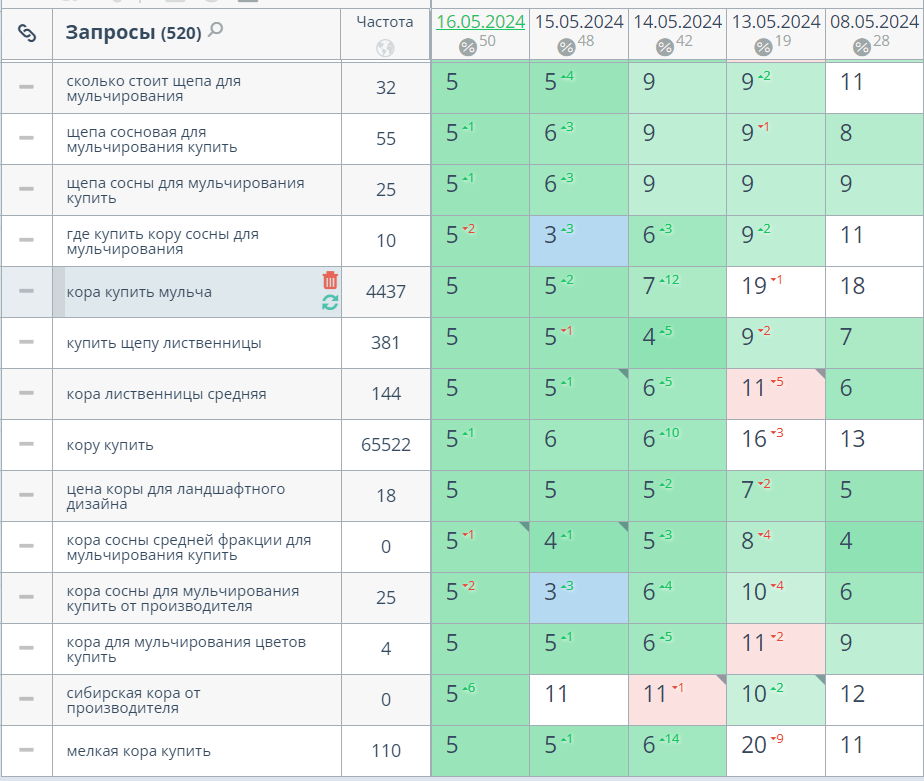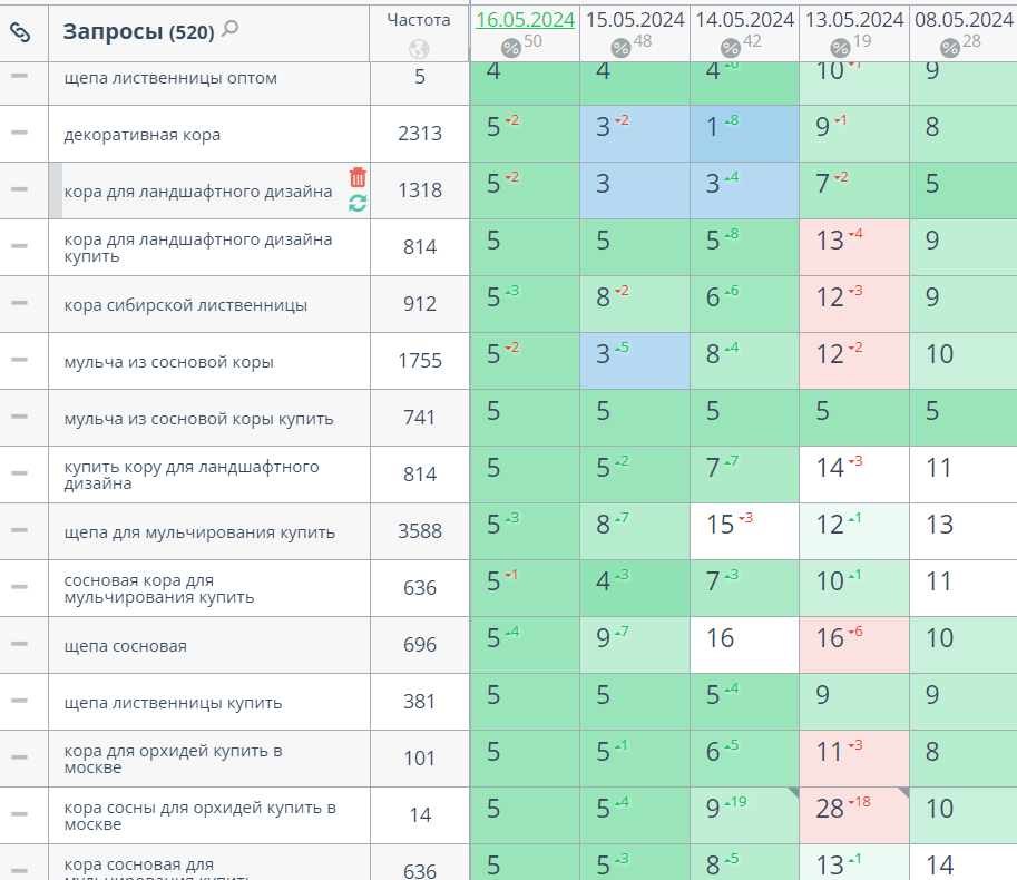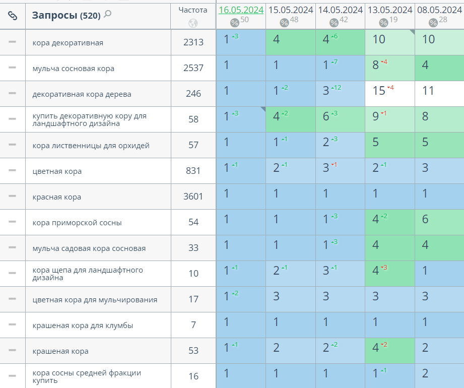 -Отчеты по трекингу ключевых слов от сервисов мониторинга позиций для отслеживания роста видимости по ключевым запросам.