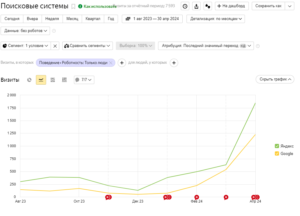 Выстроена эффективная система регулярного SEO-мониторинга, анализа и корректировки.