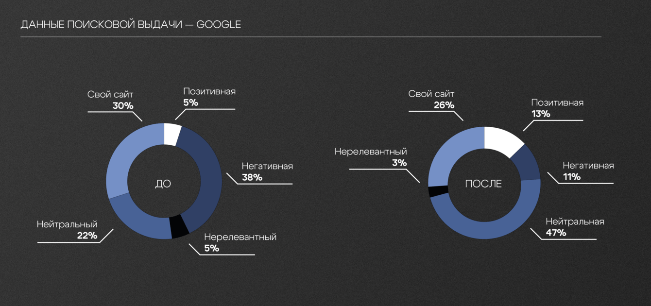 При генерации упоминаний нативно использовали ключевые фразы для продвижения флагманских позиций. При попытке найти продукт по названию модели клиент видел свежие отзывы, обзоры и другой контент, который формировал положительное впечатление. Поисковая выдача из хаотичной стала контролируемой: в ТОП-20 располагались только ресурсы с высоким рейтингом.
