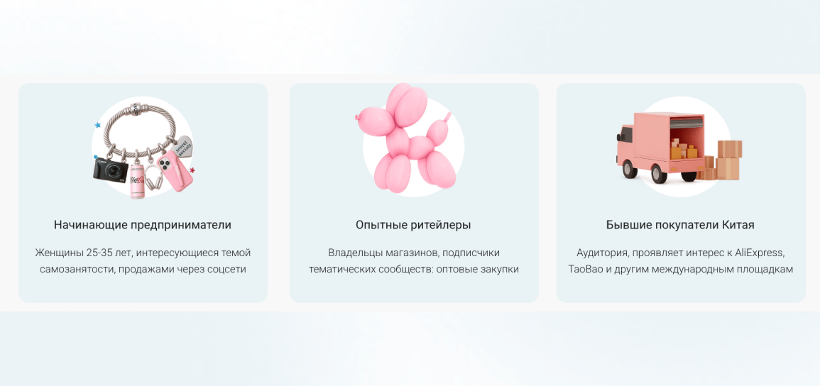 Прежде чем выбирать целевую аудиторию, мы провели короткий анализ: изучили продуктовую матрицу и средний чек, портрет текущих оптовых клиентов в CRM, активность конкурентов и поведенческие сигналы. На основе этого выделили несколько слоёв аудитории. Ядро составили подписчики сообществ конкурентов — пользователи с явным интересом к опту и закупкам.