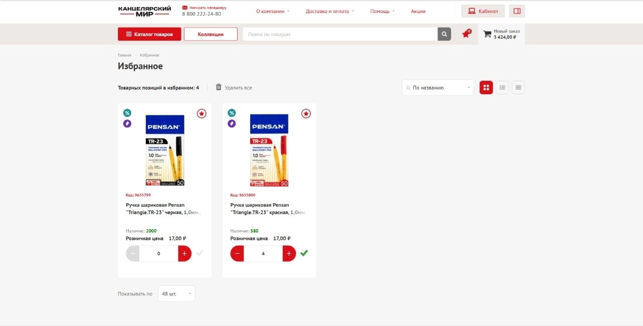 ▸ Создан персональный раздел «Избранное» для сохранения позиций