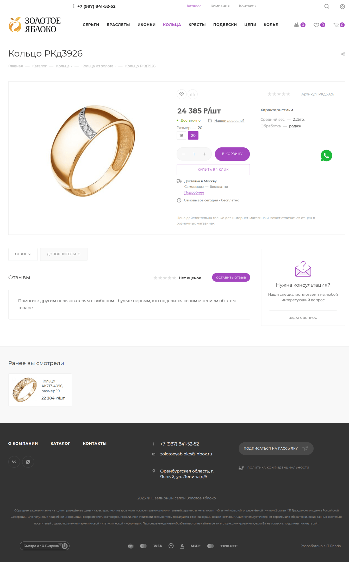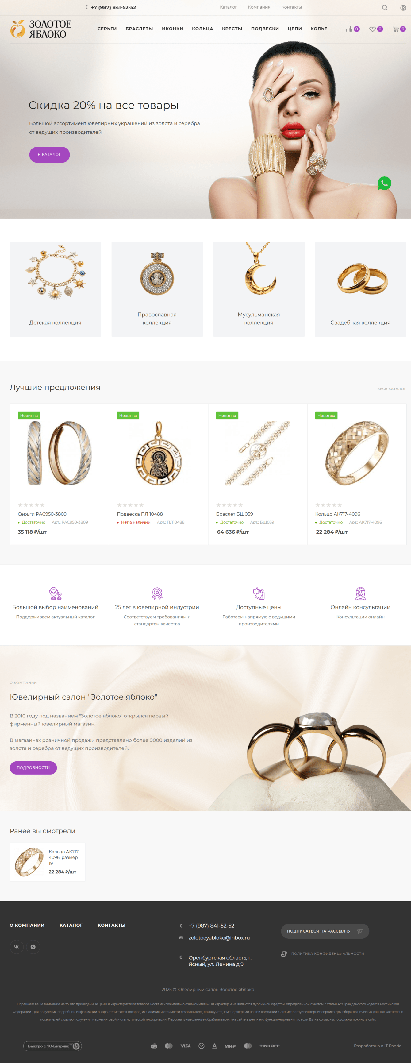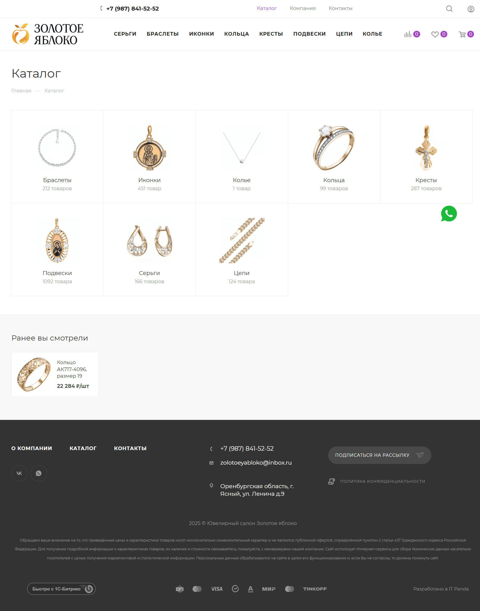 Салон ювелирных украшений «Золотое яблоко», предлагающий более 9000 изделий из золота и серебра от ведущих производителей.