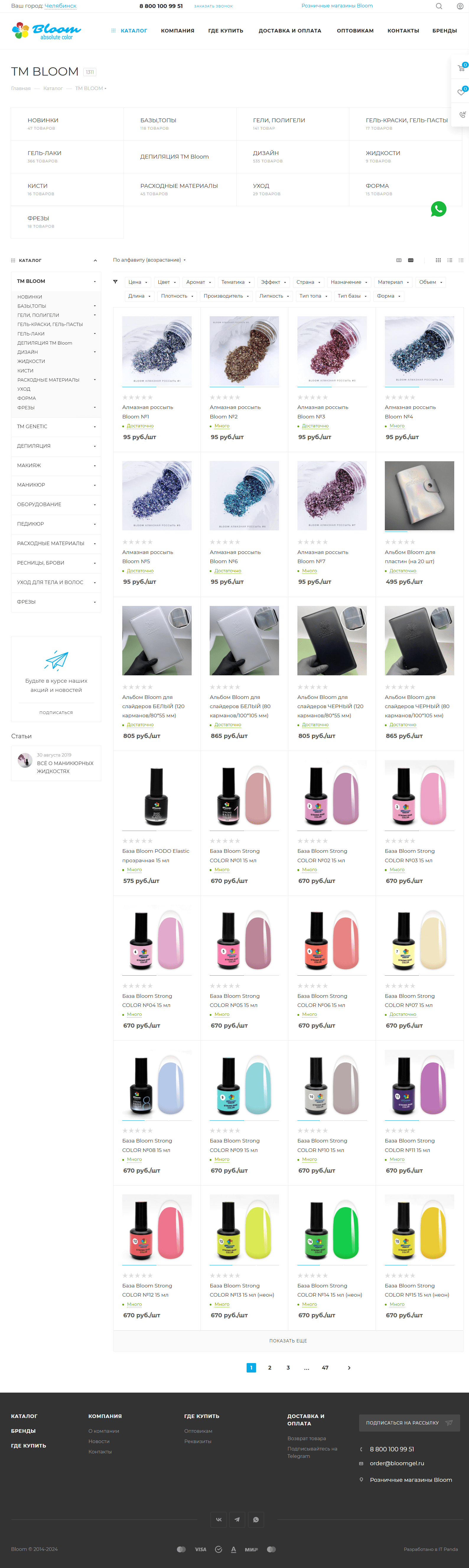 BLOOM – компания с собственным производством средств для ногтевого сервиса, имеющая 270 магазинов по России и странам СНГ.