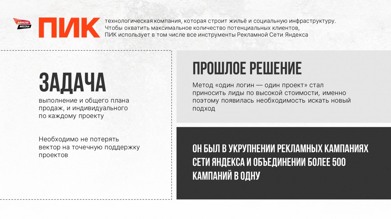 Ранее работа производилась по методу «один логин — один проект», который стал приносить лиды по высокой стоимости. Именно поэтому появилась необходимость искать новое решение.
