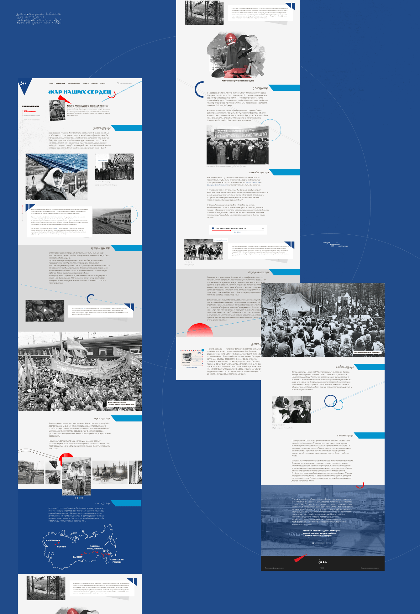 Авторами идеи проекта выступили специалисты диджитал-агентства da-team, а контентное наполнение создавалось при участии команды историков и журналистов из Центра семейного и корпоративного наследия «Проект Жизнь». Коллеги изучили литературу и архивные источники о БАМе, провели фактчекинг, пообщались с ветеранами стройки, Содружеством БАМа и людьми, живущими около магистрали сейчас. Эта масштабная работа помогла нам составить креативную концепцию проекта.