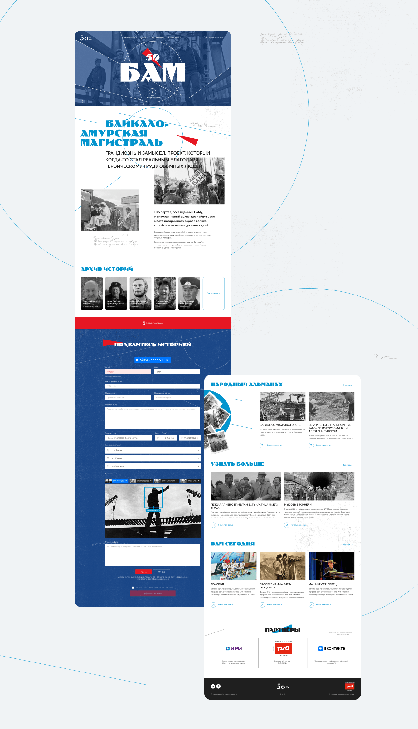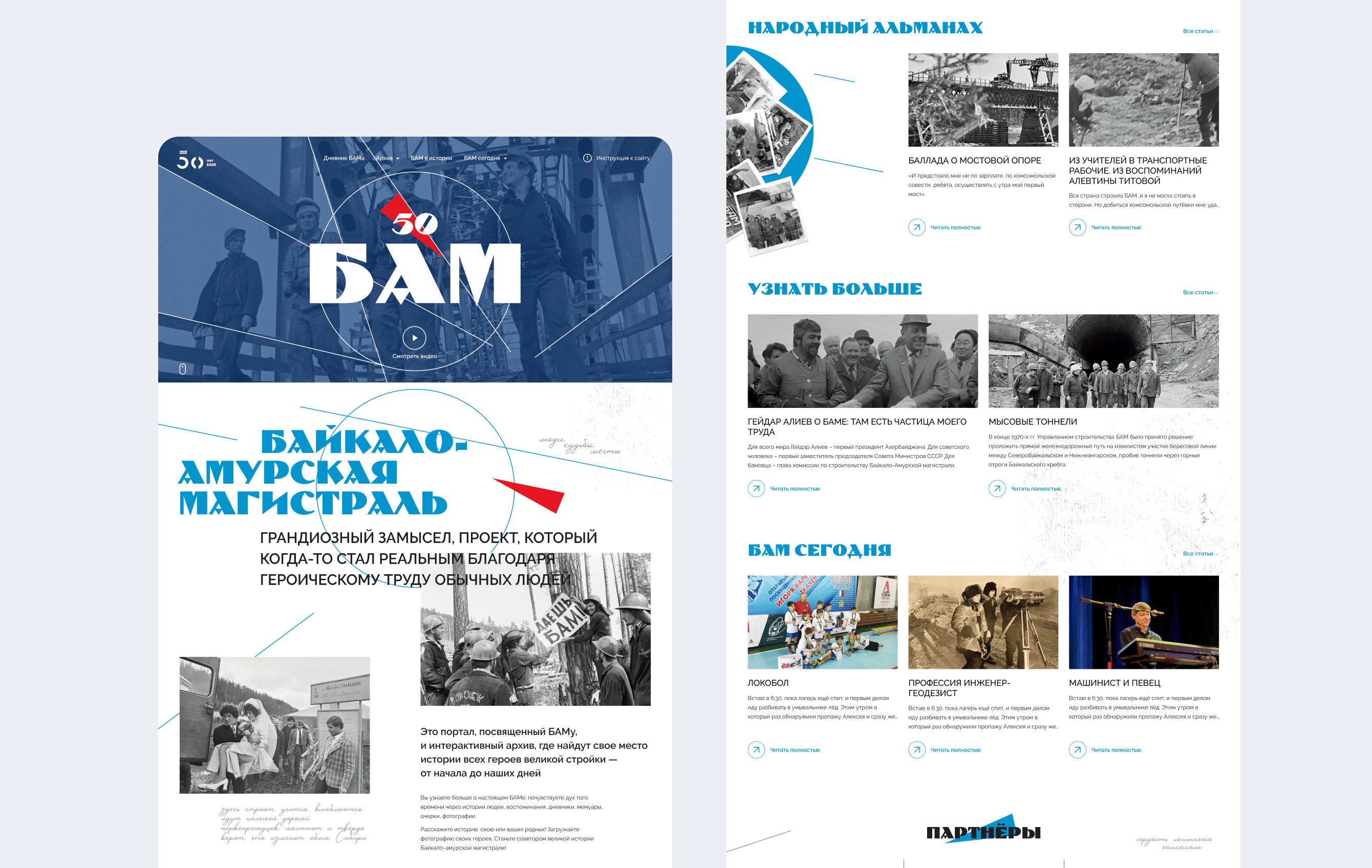 Агентство «Далее» реализовало дизайн и разработало портал БАМ-50, создание креативной идеи и ведение проекта происходило на стороне диджитал-агентства Da-team, и историческим рисерчем и копирайтингом занимались журналисты и историки Центра семейного и корпоративного наследия «Проект Жизнь».