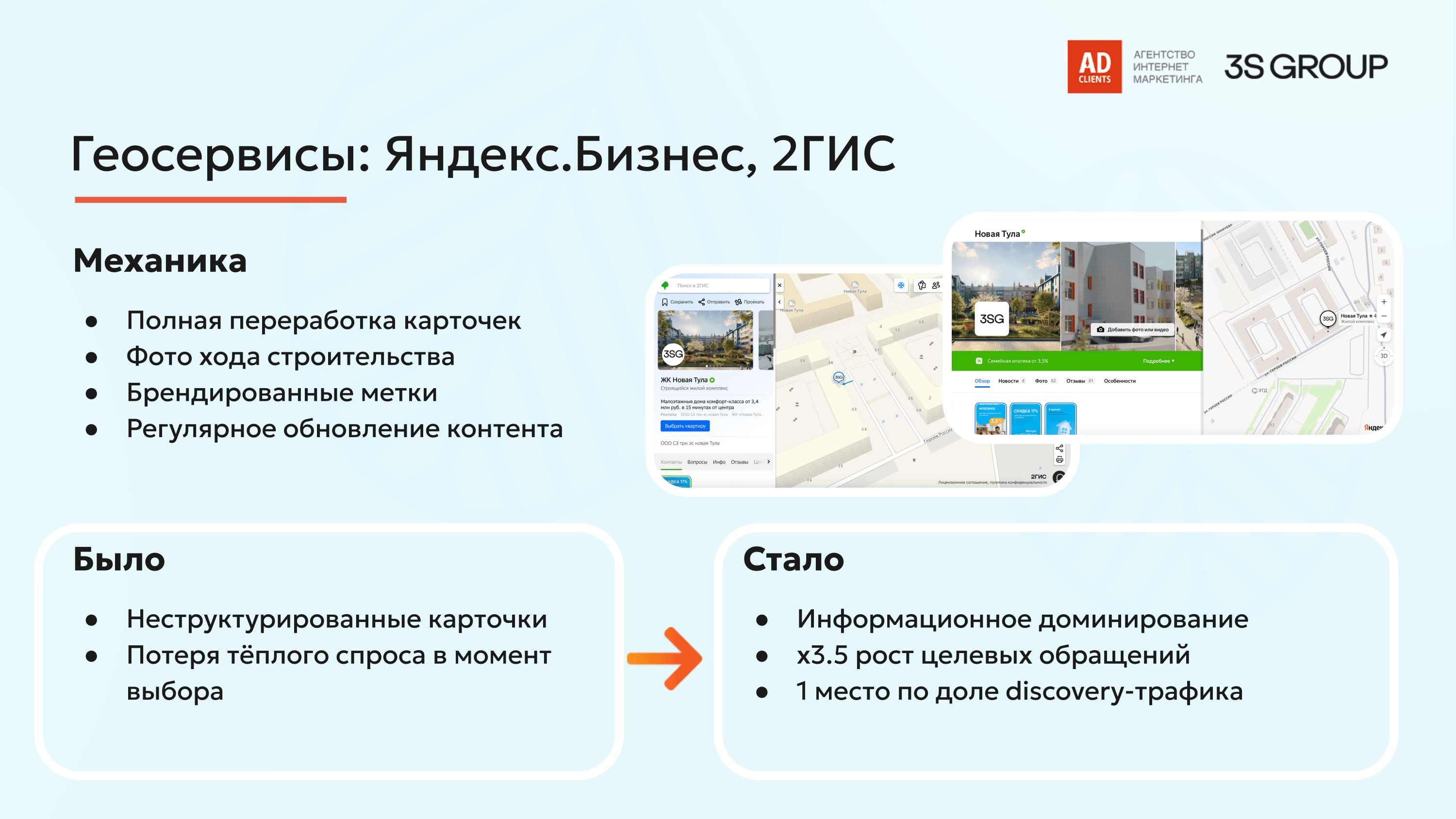 — актуальные данные и фото в геосервисах + размещение МКБ с ключевым спецпредложением;