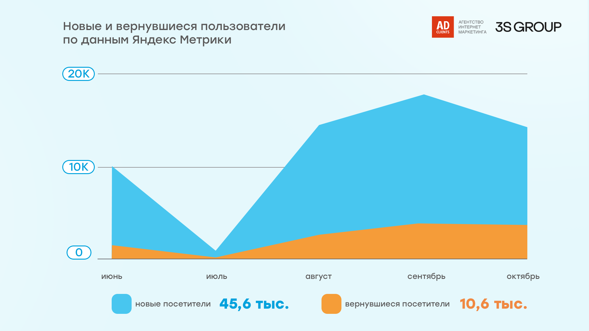 Рост новых и возвращенных пользователей, по данным «Яндекс.Метрики»: