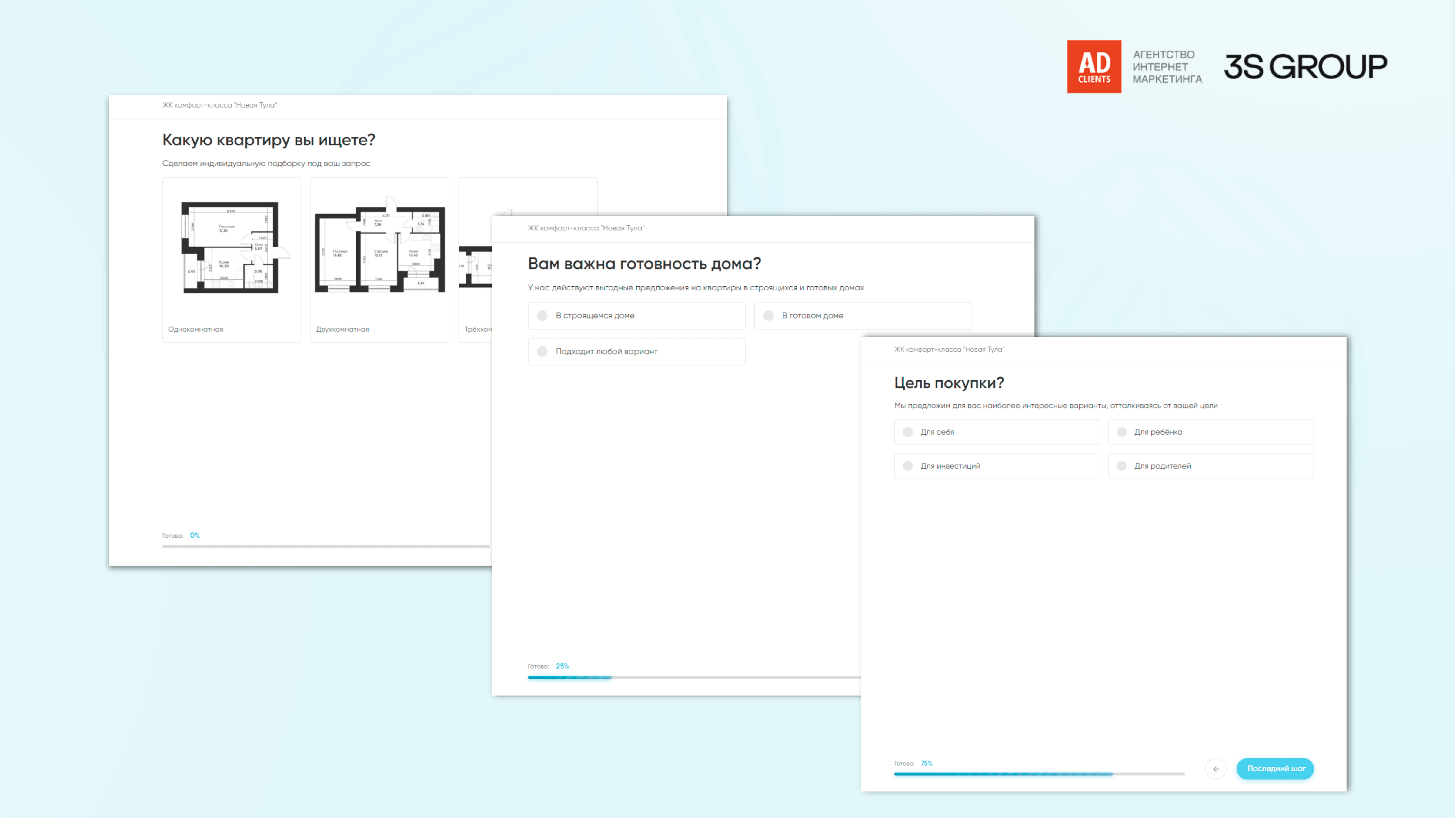 Клиент: 3S Group - девелоперская компания с более чем 15-летней историей. Специализируется на строительстве жилой недвижимости в разных регионах России. В портфолио проекты бизнес-класса в Москве и ЖК комфорт-класса в Туле и Нижнем Новгороде.