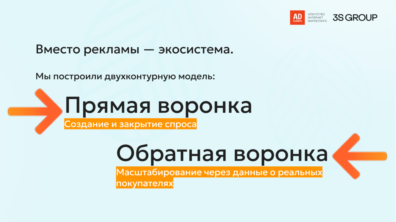 Итог: была создана экосистема, где прямая и обратная воронки усиливают друг друга, обеспечивая стабильный приток лидов и постоянную оптимизацию рекламных усилий.