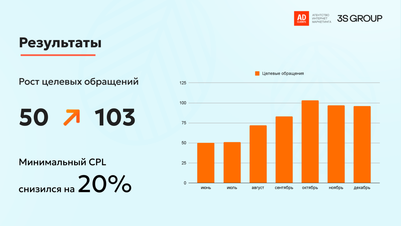В результате мы получили не просто рост обращений, но и стабильное повышение качества лидов, что в конечном счёте привело к увеличению продаж и окупаемости рекламного бюджета. Это именно тот результат, ради которого мы начинали сотрудничество![]()