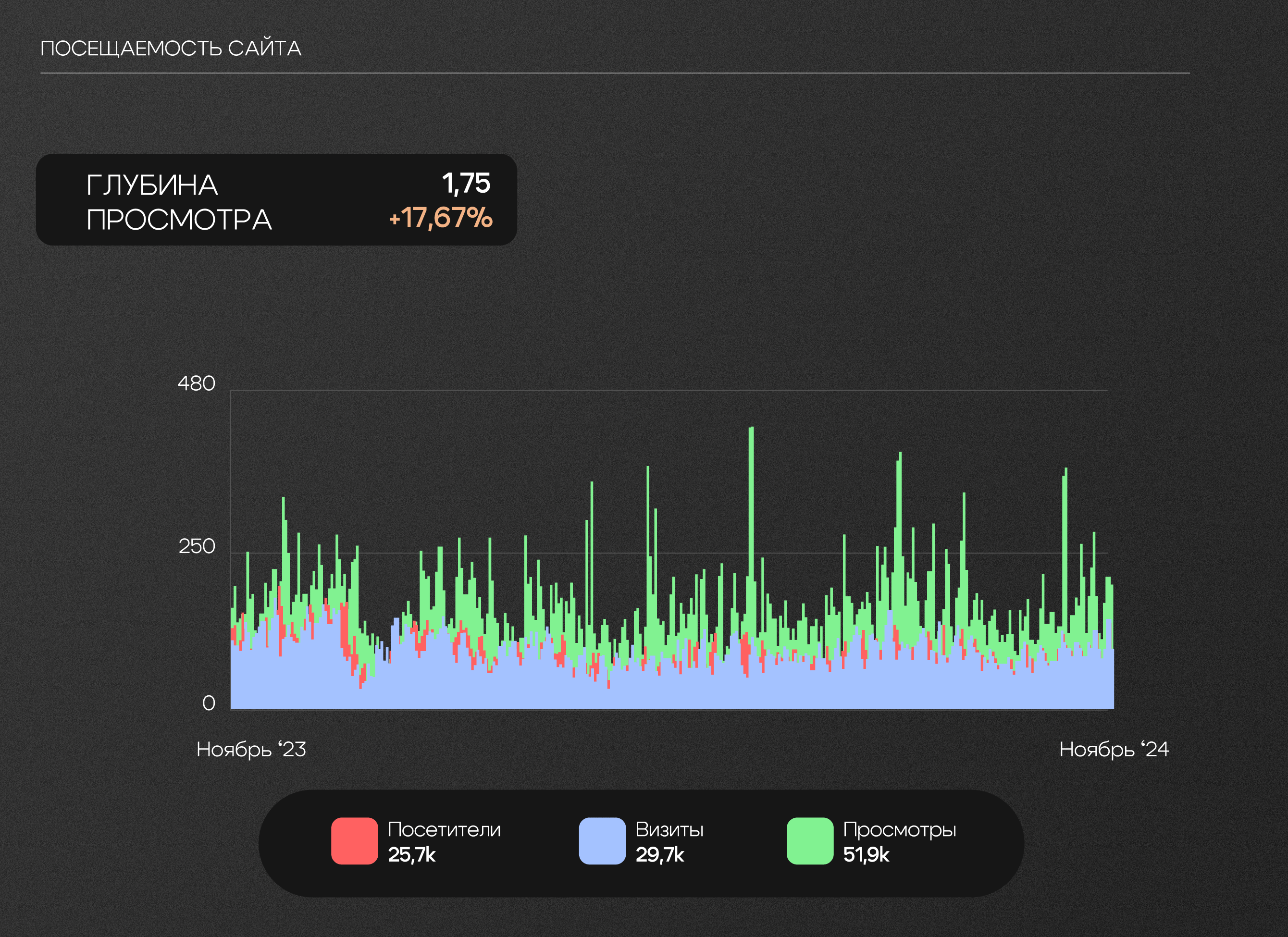 Закономерно выросла посещаемость сайта заказчика и глубина просмотра.