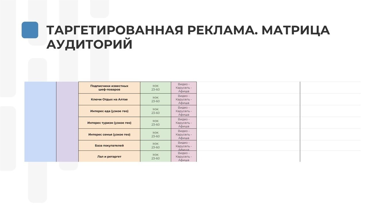 3. Аудитория туристического направления. Работаем с теми, кто интересуется спокойным отдыхом в Горном Алтае, ездит в туры, ходит на экскурсии, интересуется региональным туризмом на Алтай.