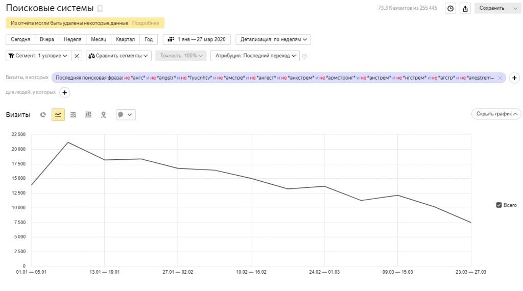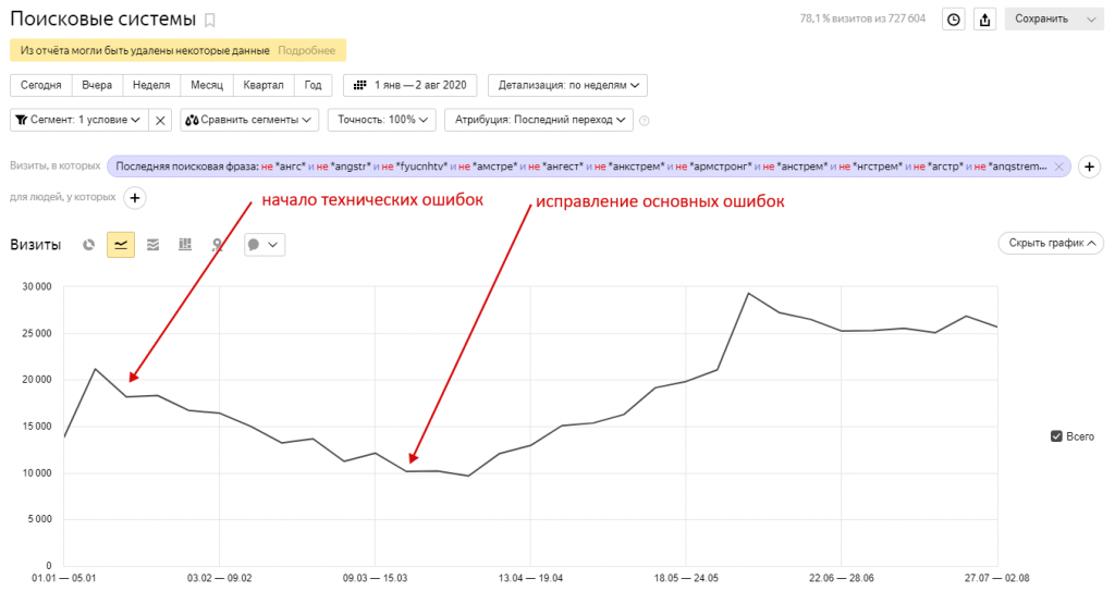 По запросам мы вышли на уровень до падения: это значит, что по большинству запросов пользователей они видели сайт Ангстрема.