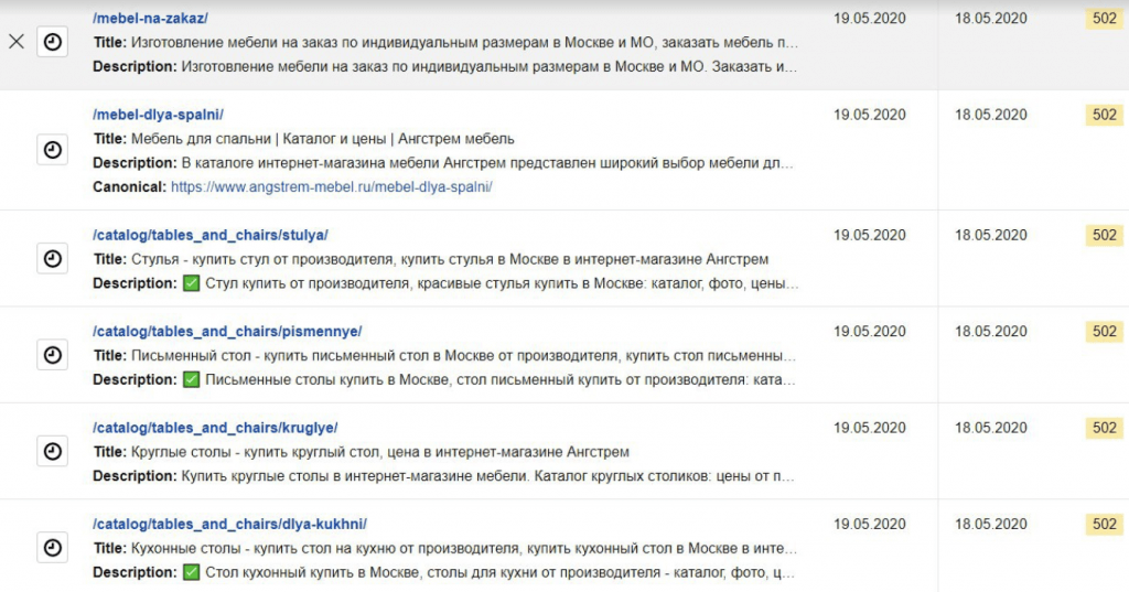 Мы проанализировать, как запрашивают другие предметы мебели, и стали использовать характеристики прямо в заголовке. Яндекс и Гугл лучше ранжируют такие страницы. Это может работать и в других тематиках, но особенно работает с мебелью: люди ищут диваны и столы под определенный ремонт, стиль, определенных размеров или цветов.