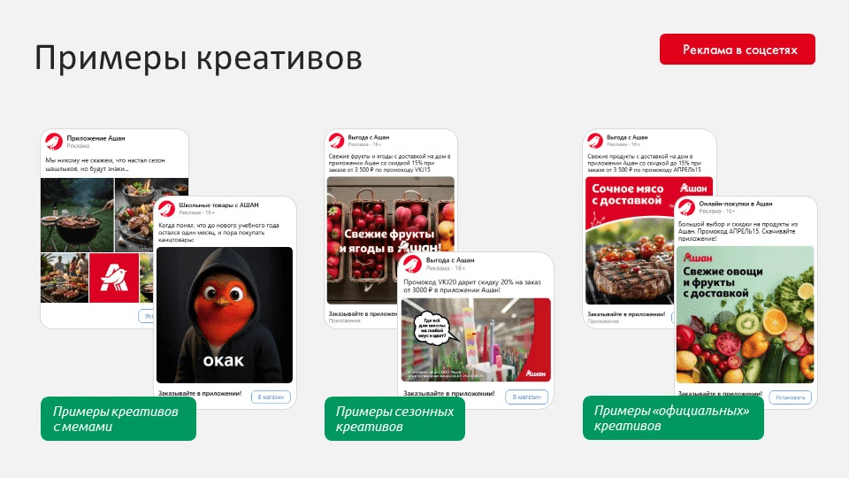1. LAL на топ-сегмент из CRM. Мы проанализировали базу «Ашан» и на основе лояльных клиентов, склонных к большим покупкам, создали look-alike аудиторию. Это сразу минимизировало риск привлечения нерентабельных пользователей.
