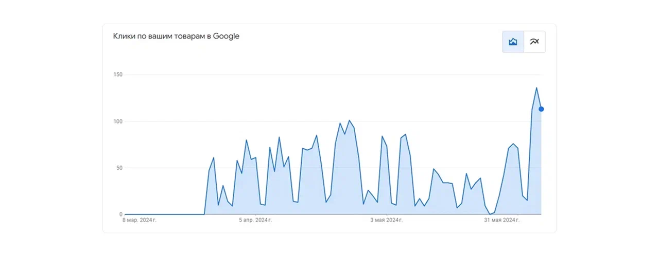 После запуска начали ежедневный мониторинг ключевых метрик в интерфейсе Google Merchant Center и Google Analytics: показы, клики, CTR (кликабельность). Проанализировали, по каким запросам и товарам наблюдается наибольший отклик, чтобы в будущем точечно усиливать продвижение.