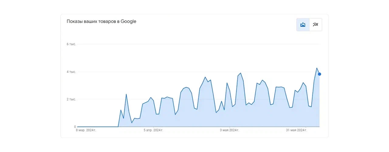 1. Рост показов в 2 раза: Количество ежедневных показов товарных карточек в поиске Google выросло с 2 000 до 4 000.