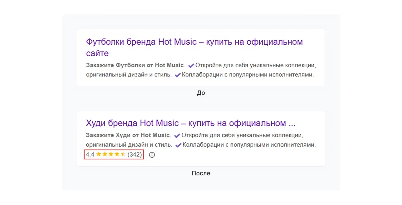 • Доработали заголовки и описания, сделав их более кликабельными и соответствующими поисковым намерениям пользователей.