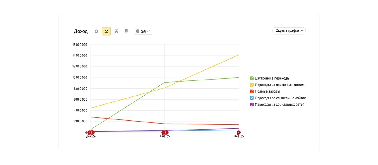 Доход интернет-магазина от поискового трафика увеличился в 3,5 раза — с 4 до 14 миллионов рублей.