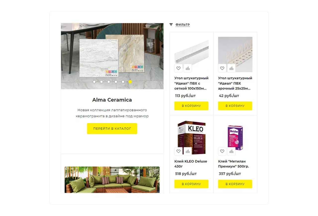 Интернет-магазин стройматериалов работал на устаревшем решении, которое не раскрывало весь потенциал платформы и создавало серьезные ограничения в презентации товаров. Основные проблемы: