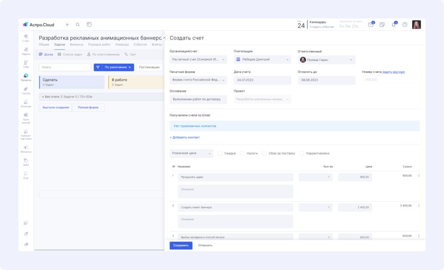 • Подключили ключевые модули: "Проекты" и "Задачи"