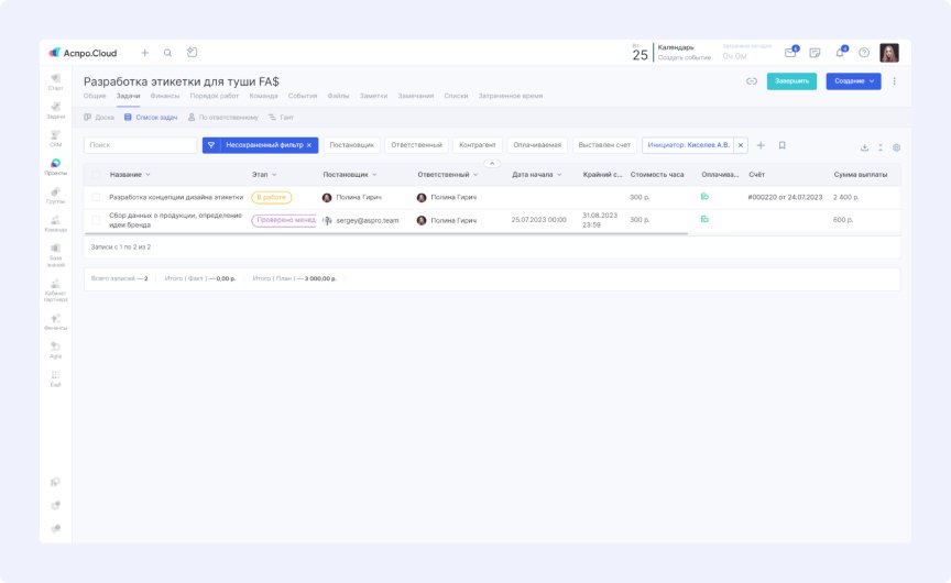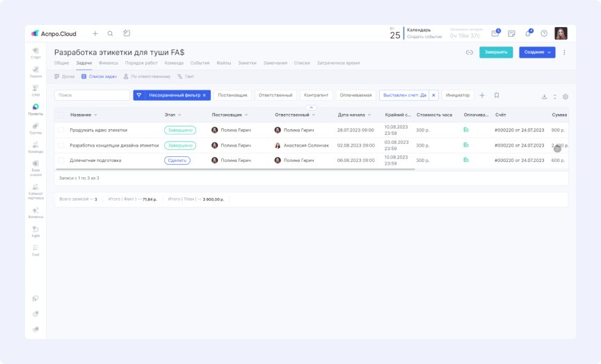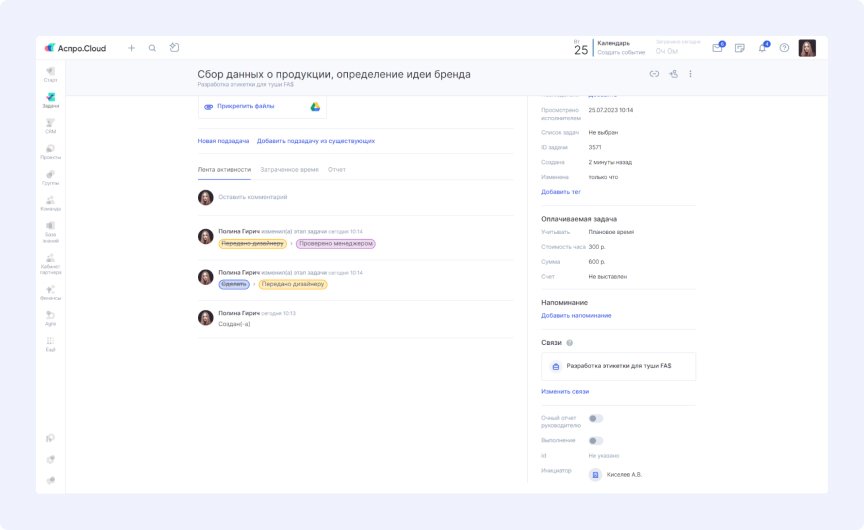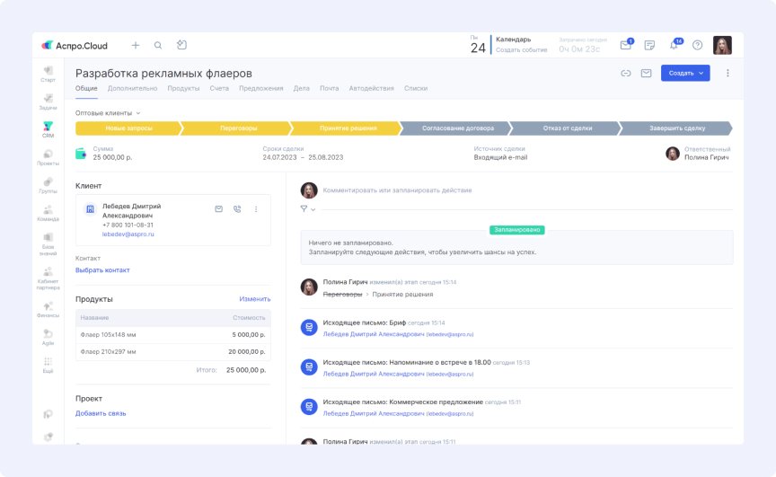 "Аспро.Cloud мы используем больше как систему для планирования, чем как CRM. Мне, как руководителю, очень удобно следить за работой сотрудников: что делали вчера, что будут делать сегодня. Это помогает быть уверенным в том, что клиент получит качественный результат вовремя."
