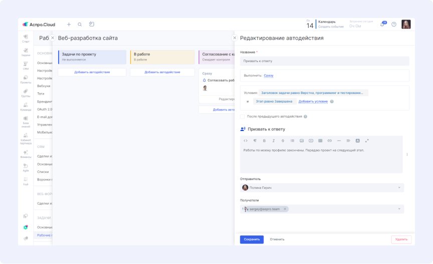 • Автодействия для координации между отделами
