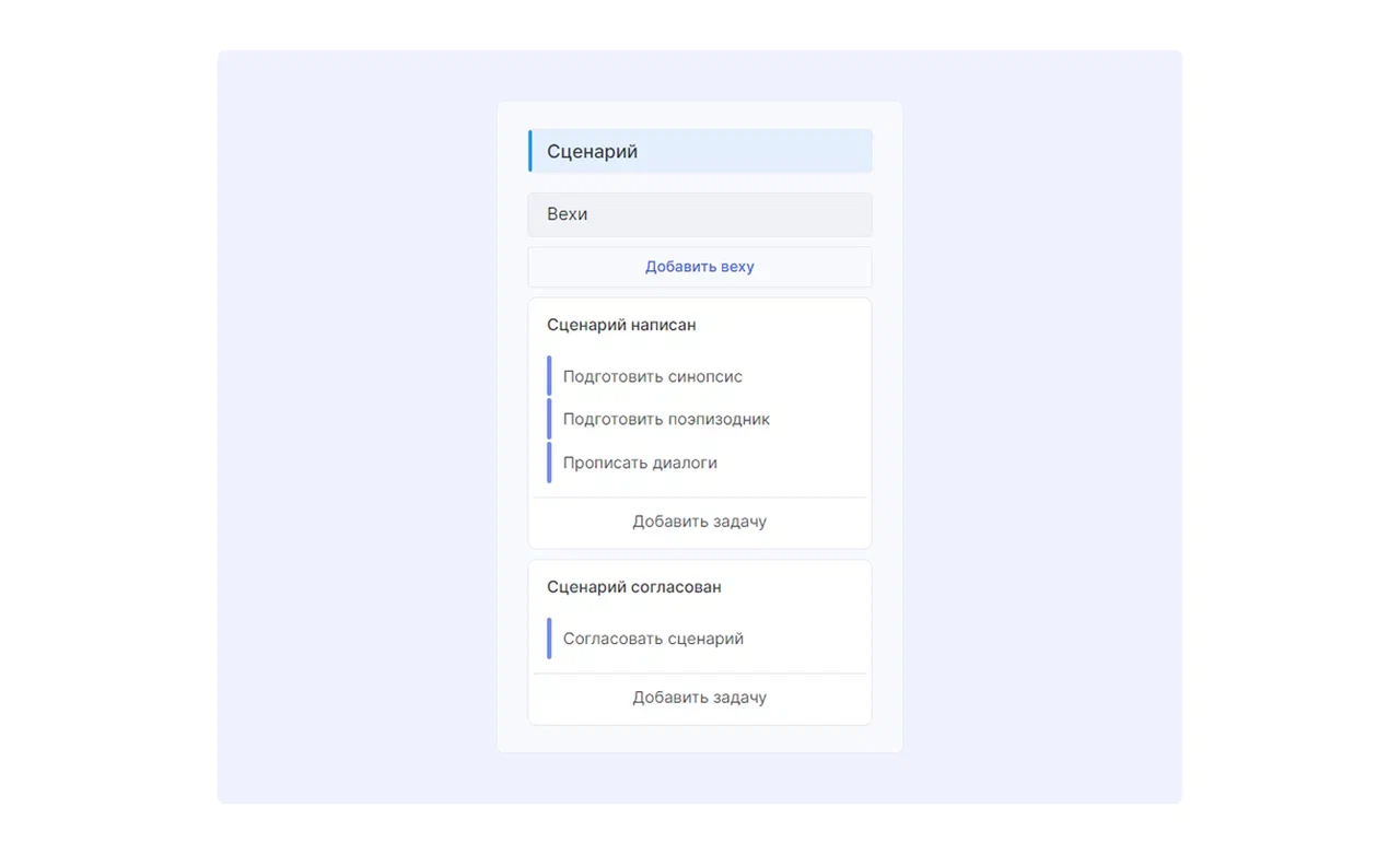 Настроили систему вех для этапа создания сценариев: