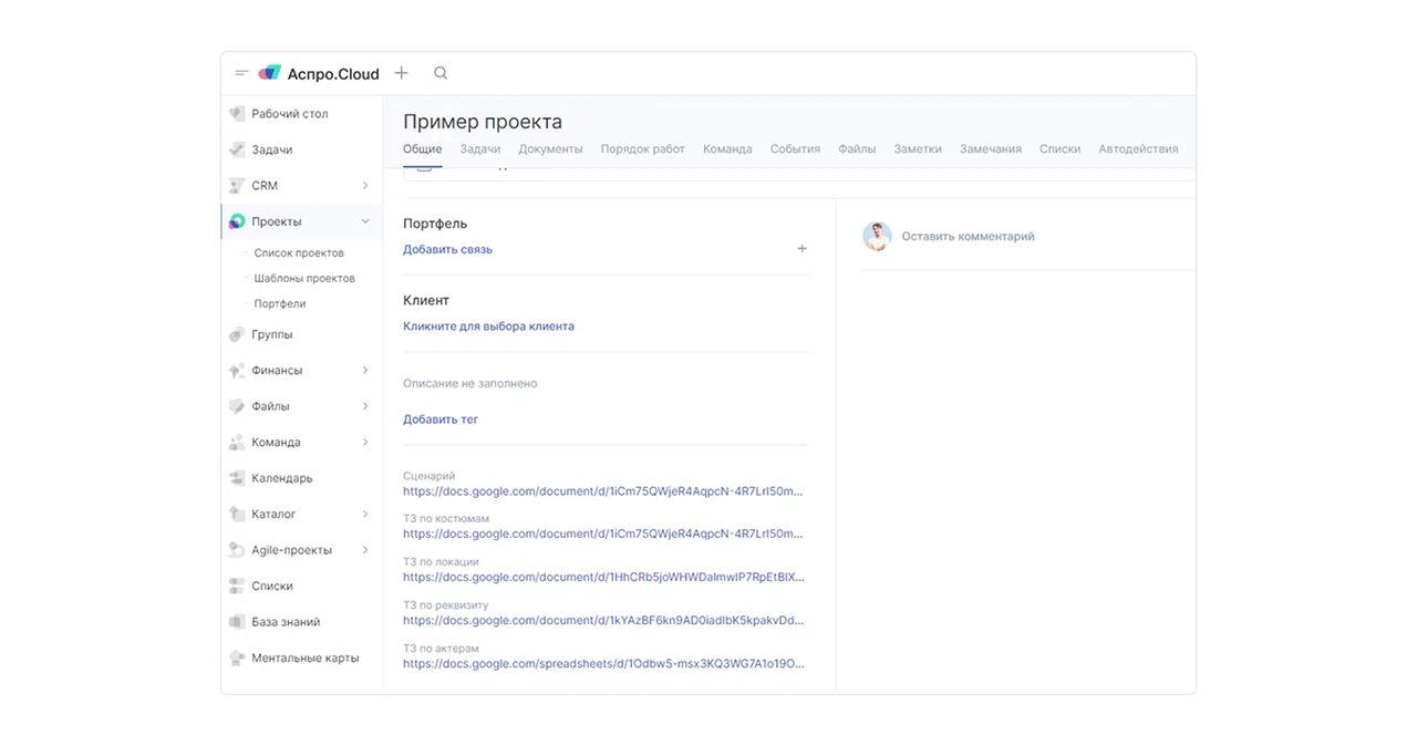 Разработали систему структурированных технических заданий через пользовательские поля. В карточке проекта хранится вся информация: