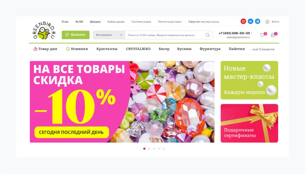 Превратить существующую лояльную аудиторию социальных сетей GreenBird в стабильный поток покупателей через интернет-магазин. Сайт уже работал, но его устаревший функционал и дизайн не позволяли эффективно конвертировать посетителей в клиентов. Основные проблемы:
