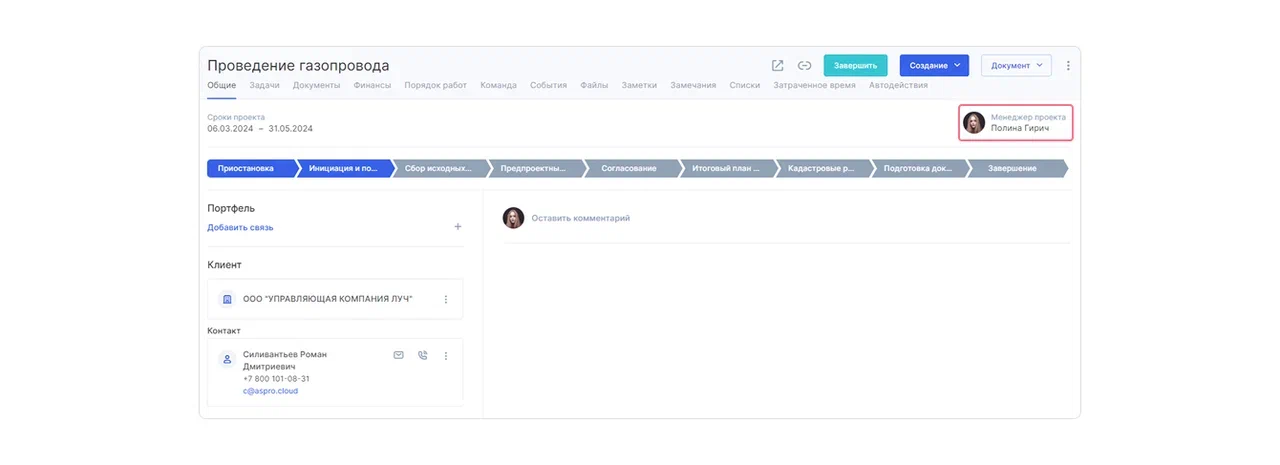 "С помощью Аспро.Cloud мы избавились от хаоса в рабочих процессах. Теперь мы не боимся вести параллельно больше 100 проектов. Если сотрудник уходит в отпуск или увольняется, вся информация сохраняется в системе, и новый специалист может продолжить работу без проблем", — Ксения Голубева, главный инженер проектов.