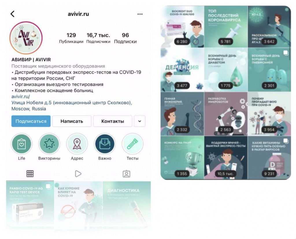 Придумываем, рисуем и выкладываем блоки сторис, с актуальной информация связанной с короновирусом или тестами. Создаем вовлекающие игры в сторис. Публикуем продающие истории с тестами и их преимуществами.