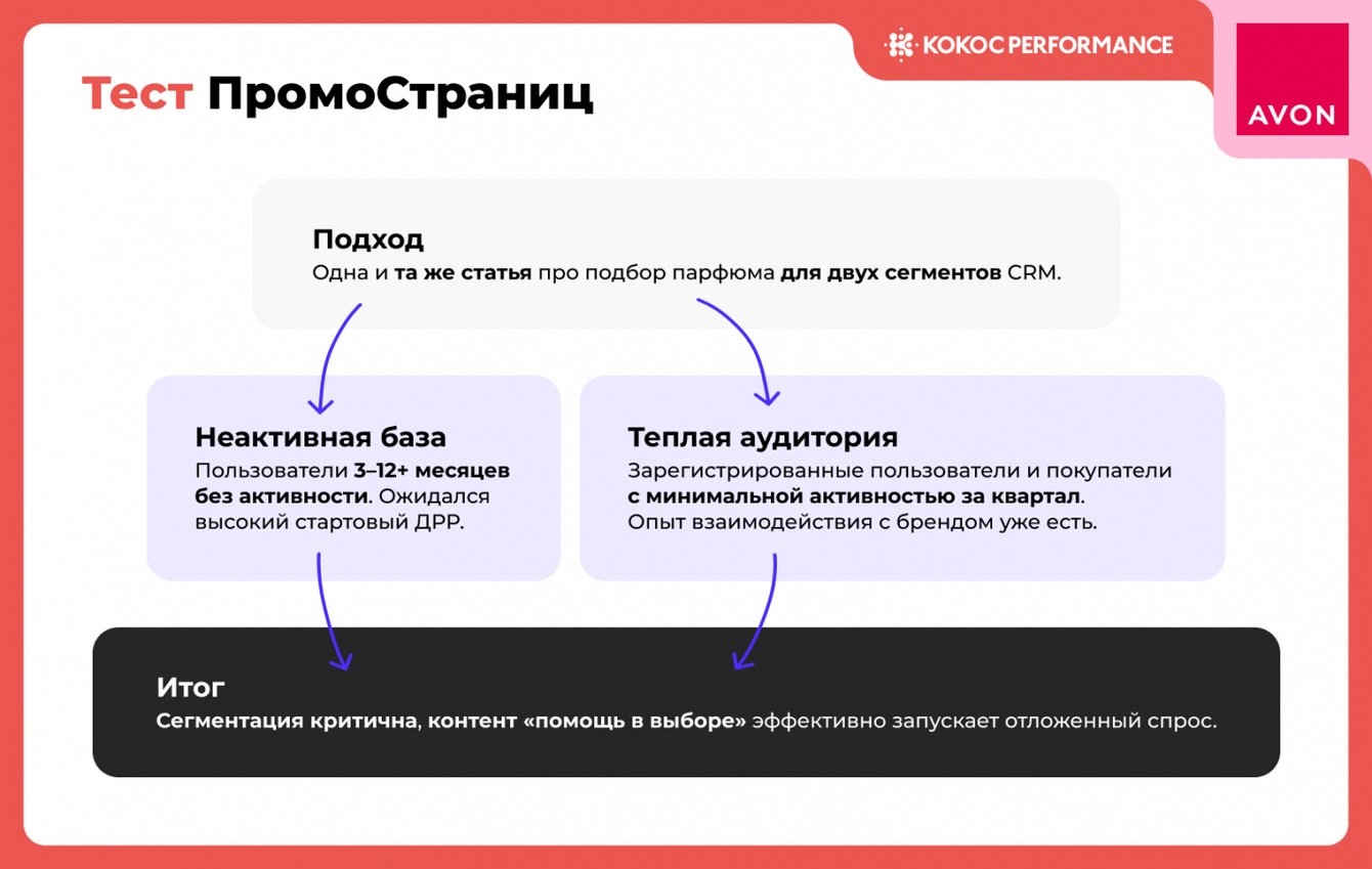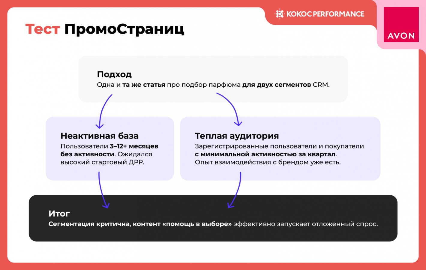 Медийные форматы традиционно используют для охвата и узнаваемости, но все чаще бренды ждут от них измеримого вклада в продажи. Особенно это актуально для e-commerce, где эффективность инвестиций оценивается через ДРР, заказы и выручку. В этом кейсе команда Kokoc Performance (входит в Kokoc Group ) вместе с Avon проверила, может ли контент в «ПромоСтраницах» работать как полноценный перформанс-инструмент. О результатах эксперимента, гипотезах и выводах рассказали Sostav.