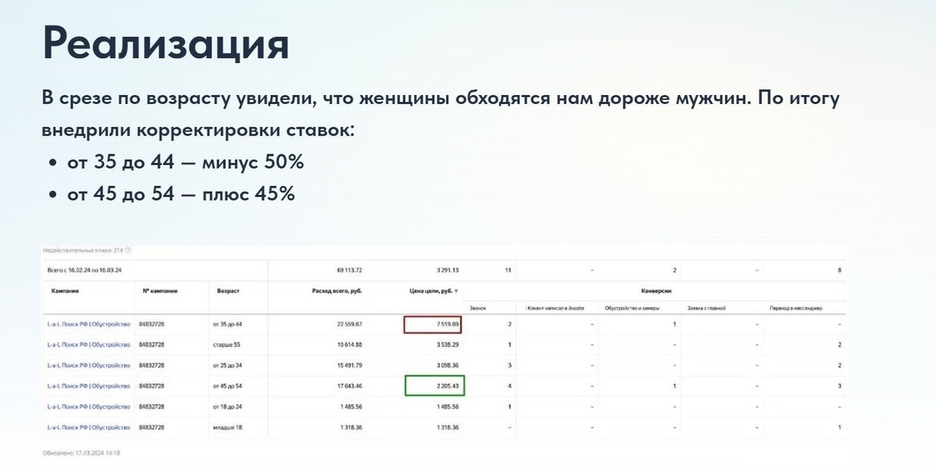 Планируем провести еще один аудит за последние 30 дней и внести корректировки по другим срезам во все рекламные кампании.